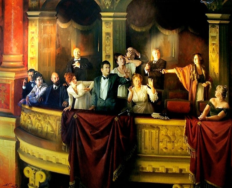 Мелпомена натиска спусъка тъкмо по време на сценична буря. Така изстрелите хвърлят мост между крушението на кораба и драмата в ложа № 2. Мрачна символика, която свързва изкуството с действителността чрез знака на смъртта. Сякаш самата покровителка на трагедията се е обърнала в отмъстител.