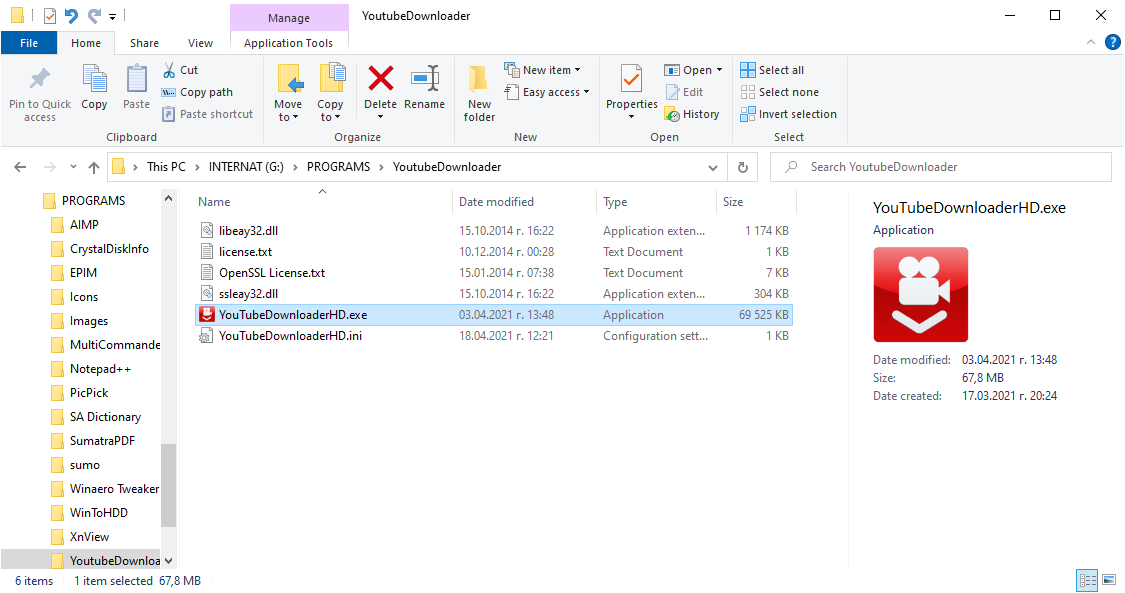 Изпълнимият файл е YouTubeDownloaderHD.exe