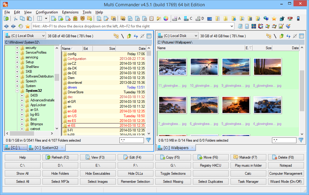Multi Commander е многотабов файлов мениджър, който е алтернатива на стандартния Windows-ки Explorer. Той използва популярната и ефикасна двупанелна форма.
