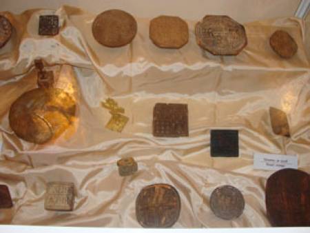 Различни видове просфорни печати, представени на изложбата в Бургас